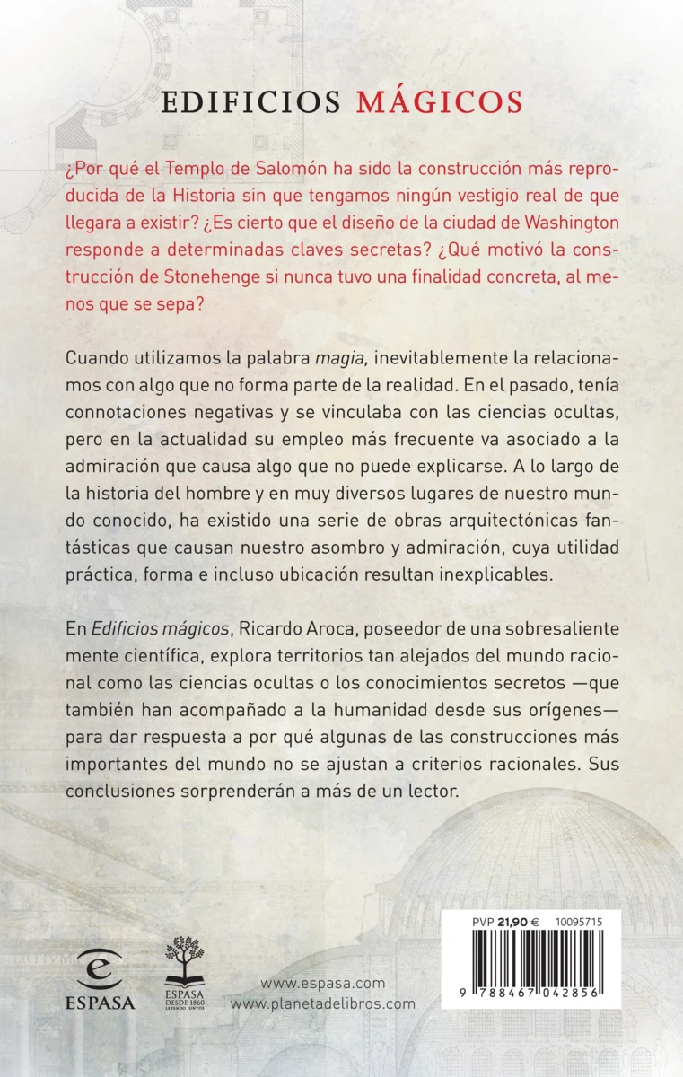 Aroca construye un texto sobre la relación de las sociedades secretas, más conocido como «el ocultismo», con la arquitectura. Un libro que aúna magia, historia, anécdotas, ciencia, arquitectura y antiguos misterios en torno a edificios mágicos