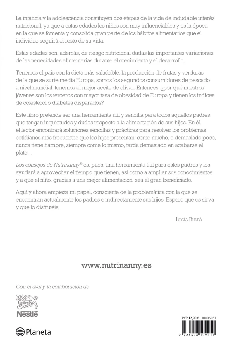 Es autora de Los consejos de Nutrinanny (Planeta) y creadora de El método Lucía Bultó para el control de peso y la salud.